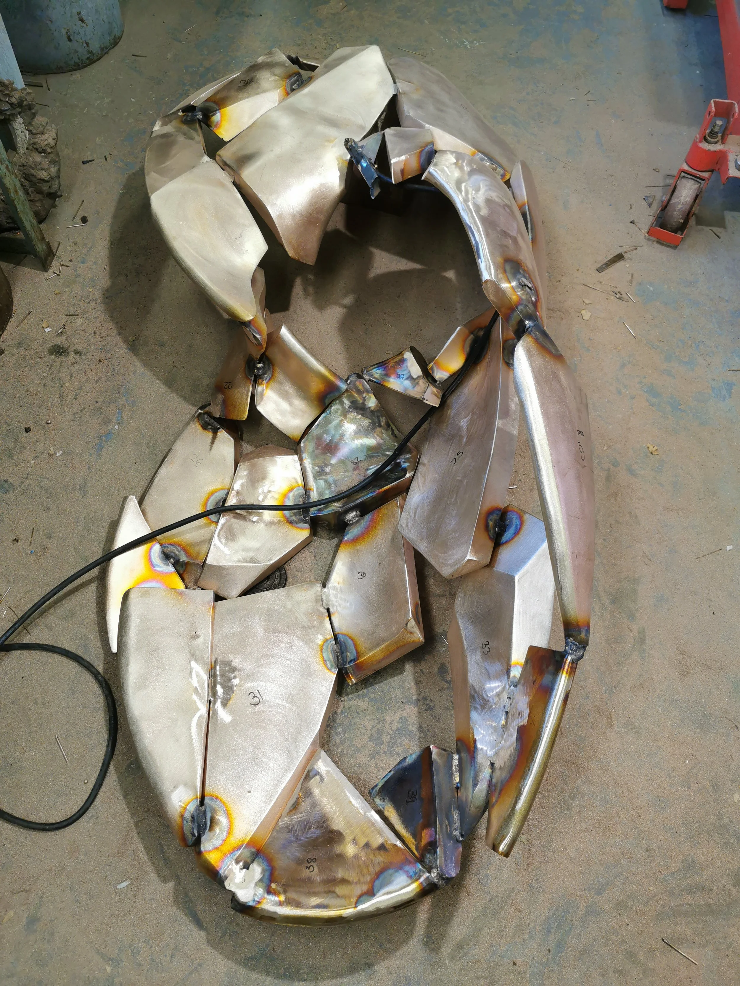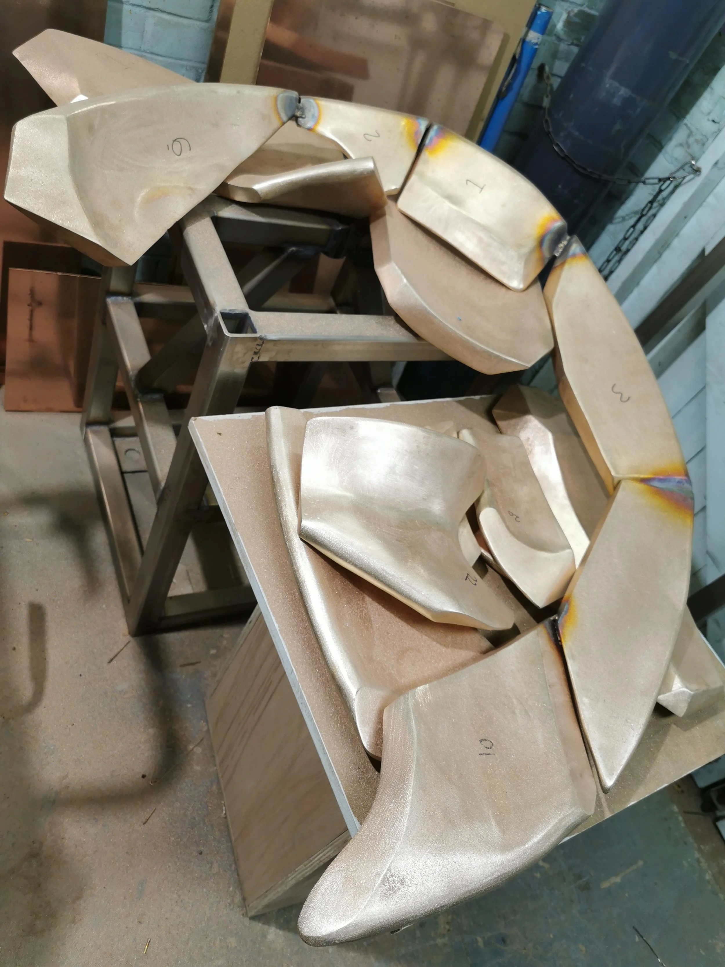 The process began with a digital model, every component part was first 3D printed to create a physical prototype, from which precise templates were extracted. This rigorous preparation ensured that each tectonic plate was cut and dished by hand, shaped with absolute accuracy before the formal welding began.